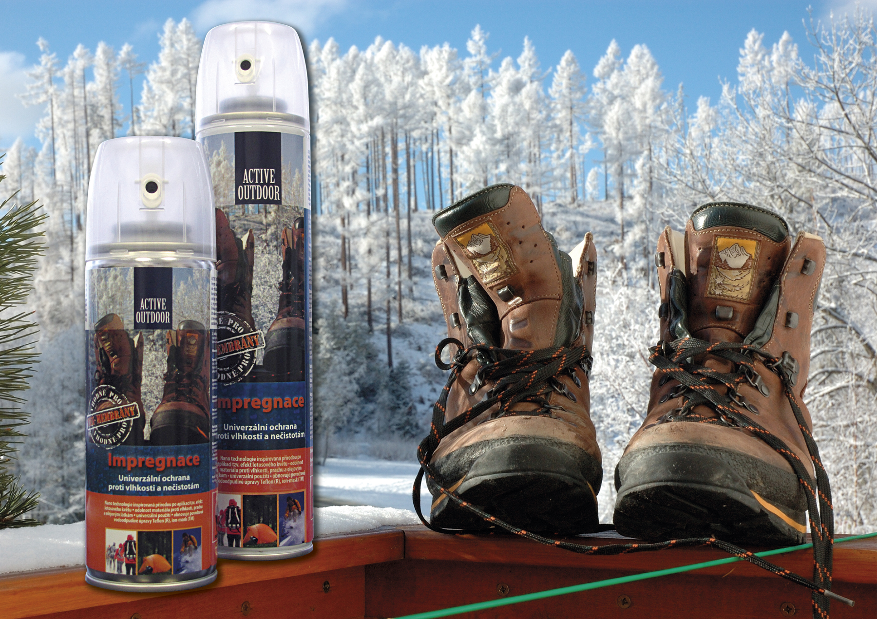 Univerzální ochrana proti vlhkosti a nečistotám Active Outdoor Impregnace je ošetřující směs se zvýšeným obsahem fluorovaných polymerů, které zamezují pronikání vlhkosti do struktury materiálu. Impregnace po nanesení mění povrchové napětí a minimalizuje kontakt vody s materiálem. Udržuje vodní kapky na povrchu. Nesnižuje se propustnost pro vodní páry (nezhoršuje se mikroklima v obuvi) a je proto vhodná pro membrány typu Gore-tex, Sympatex apod. Doporučujeme při používání nastříkat postupně co nejvíce vrstev 3–4. Povrch nepromáčejte a mezi aplikací nechejte materiál vyschnout. Silikonový olej ani emulzi do výrobků nepřidáváme, aby se nesnižovala propustnost pro vodní páry.